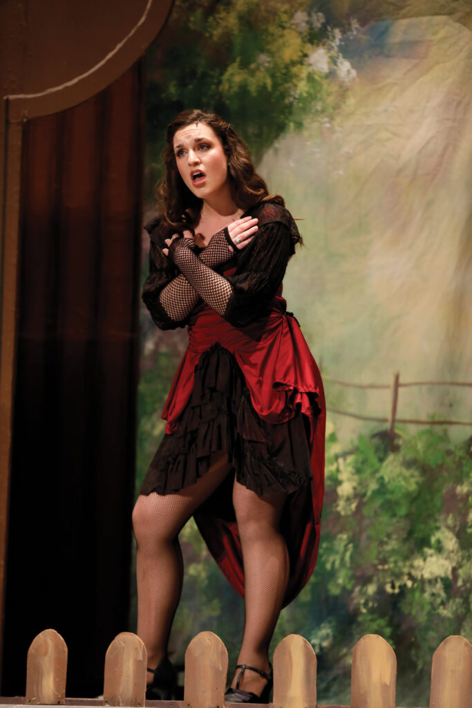 Undeterred, McIntyre and his students built every set in the Little Theatre across campus, then dismantled each piece to fit through the single side door. ”With only one week to go before opening night, we moved in all of that scenery to reassemble it as contractors were still finishing up the new stage,” he explains. ”Vital parts of the stage’s permanent rigging didn’t arrive until the day of performance, so the last few hours before showtime were even more hectic than normal.”